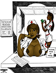 I was recently commissioned to go back and color an old pencil drawing of these sperm bank nurses. The client requested they be ebony nurses. Some minor modifications were made to the lineart (mainly editing the ladies’ noses), but for the most part its the same drawing.