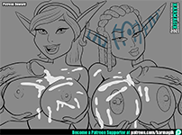 Tess and Ashelin from the Jak and Daxter games getting their boobs covered in cum.