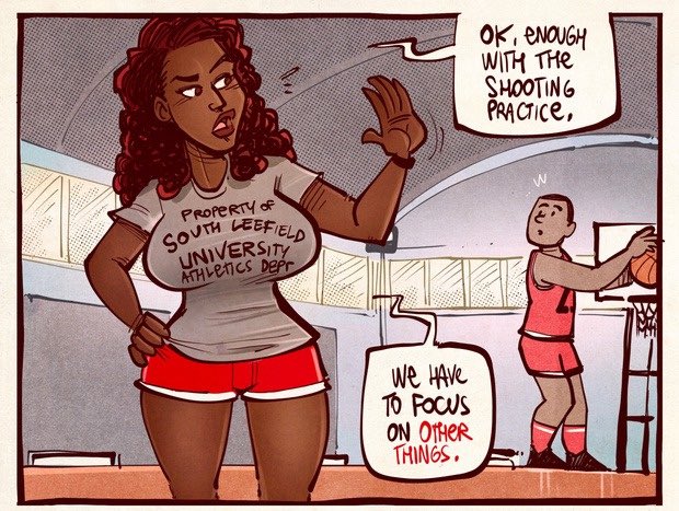Aisha Wilkins shows off her passion for basketball, and her passion for other things in the super spicy second panel of this one page comic, only on Albo’s Patreon.