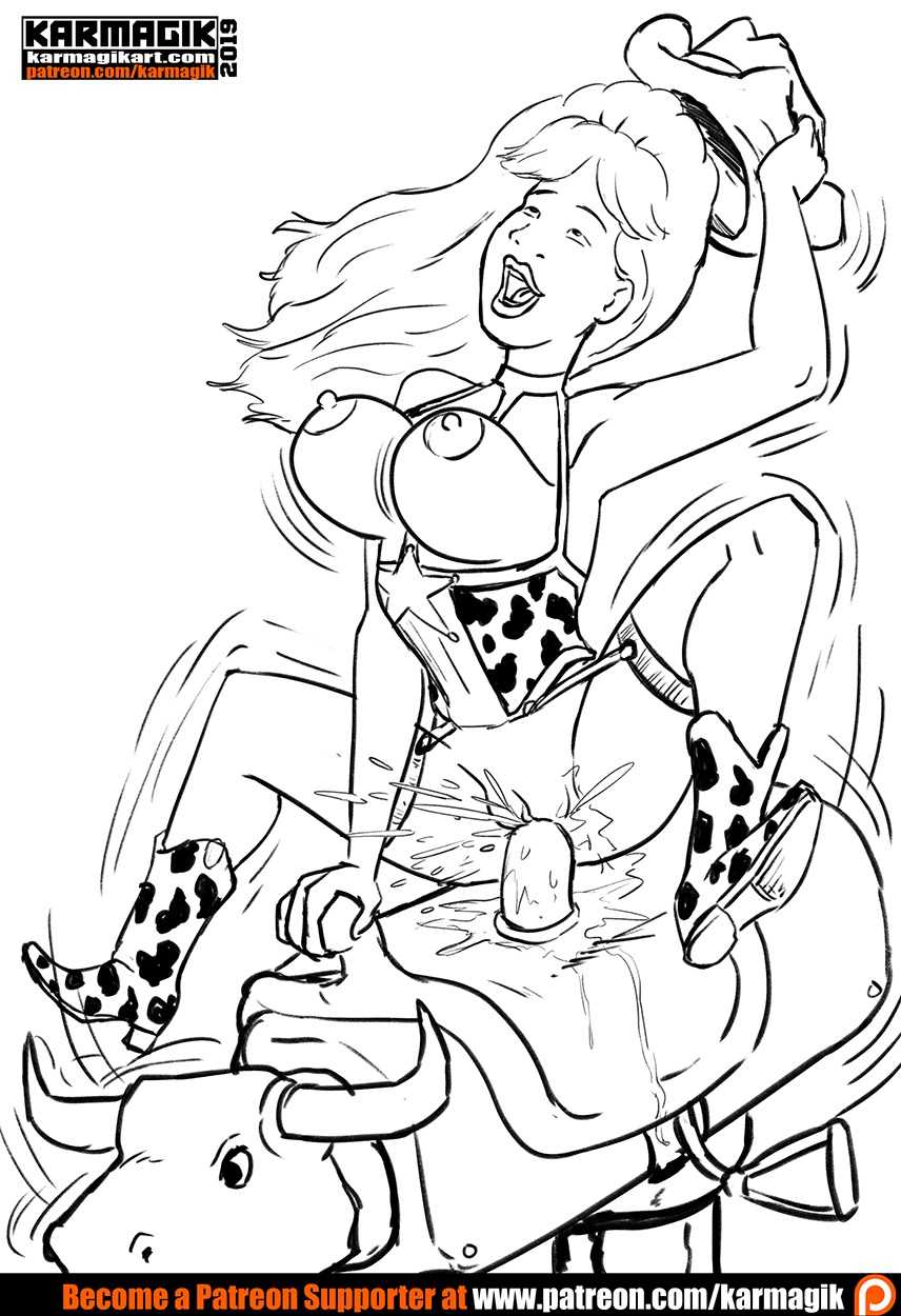 Luanne Platter bull riding Luanne rides a mechanical bull. From King of the Hill. Patreon Bra Buster Supporter Reward.