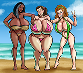 The final version (at least for now) of the bikini beach crossover pic. This version adds in Lupe from The Book Club and Officer Vasquez from Thrills of Victory.