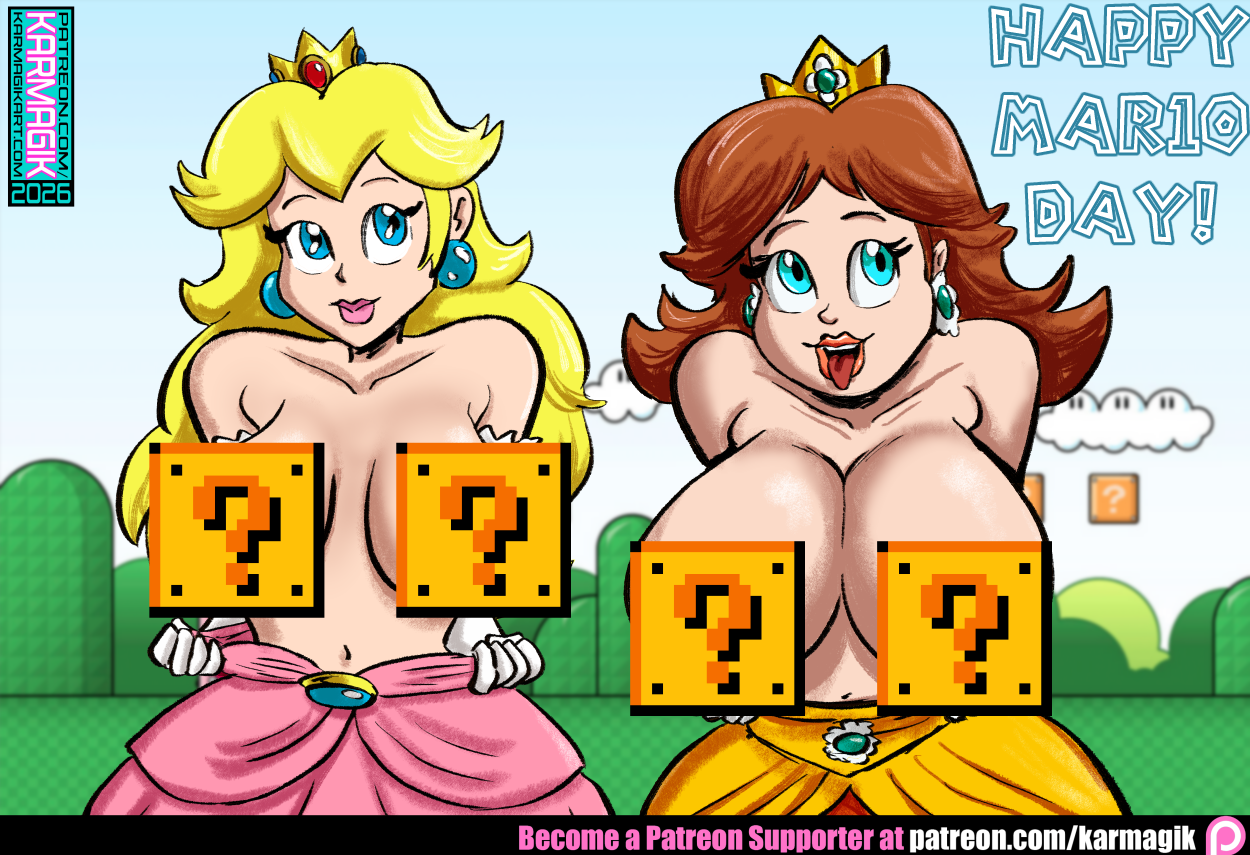 Peach and Daisy flashing Princess Peach and Princess Daisy flash their royal tatas! from Super Mario Patreon Suggestion Box Request 3/10/2026 |