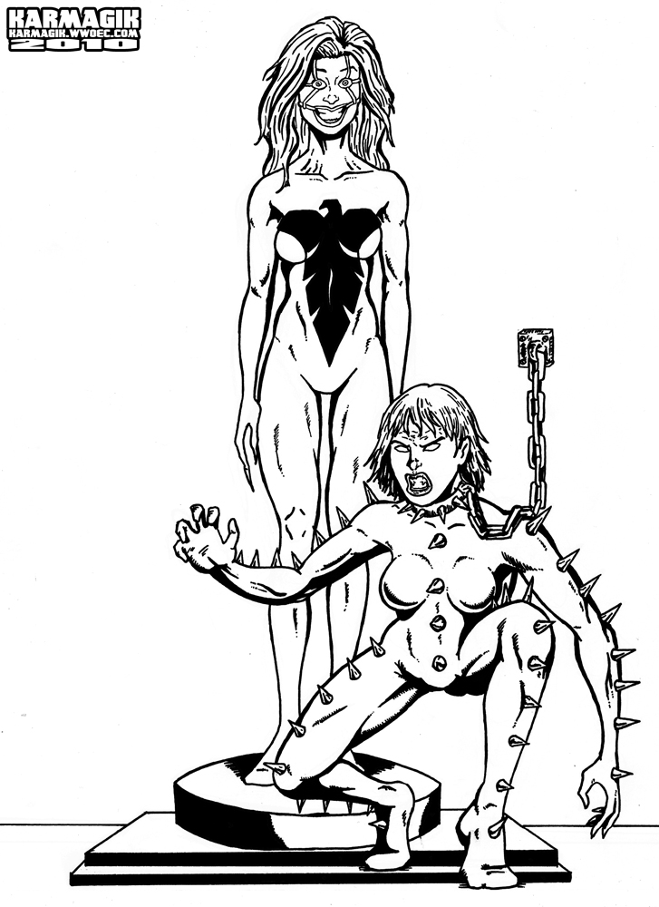Mojo's Trophies Emma Frost and Sage Captured and transformed by Mojo to put on display From X-Men (Marvel Comics) Inks colored in Photoshop BY COMMISSION 12/18/2010 Ink version |