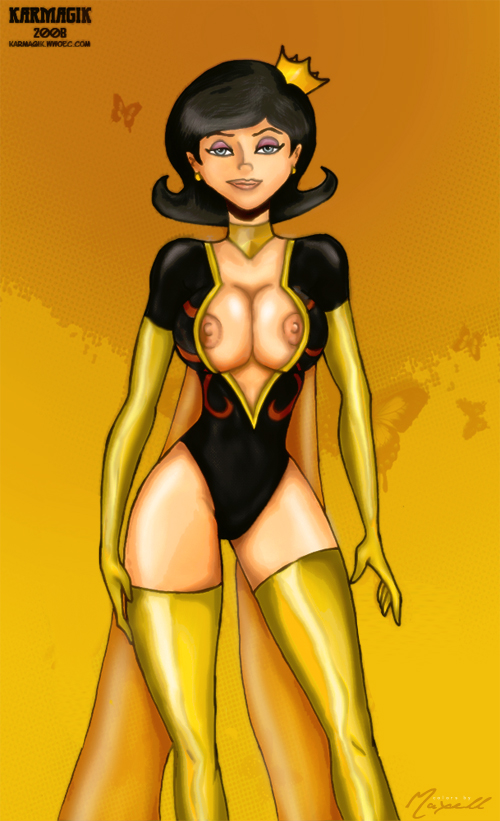 | My pics colored by psionicentityman | Mrs. Dr. The Monarch Dr. Girlfriend's "cupcakes" spill out of her new costume 07/05/2008 |